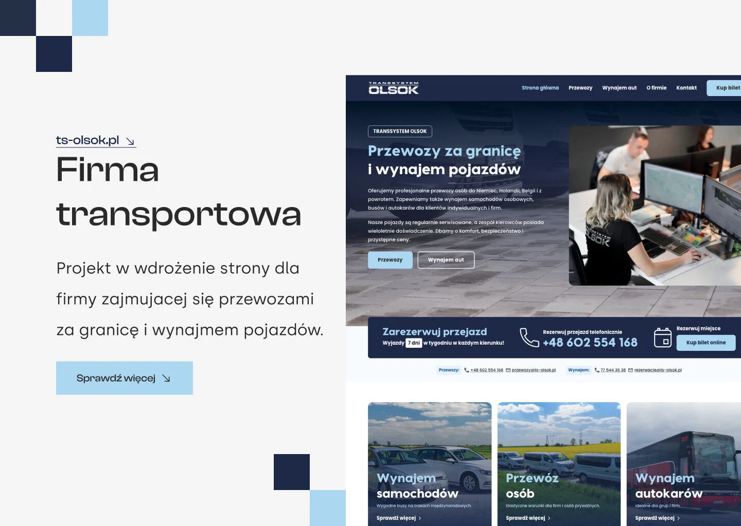 TS-Olsok to duża firma w branży przewozów pasażerskich z flotą ponad 1000 pojazdów. Od 2009 roku przewożą tysiące Polaków między Polską a Niemcami, Holandią i Belgią.