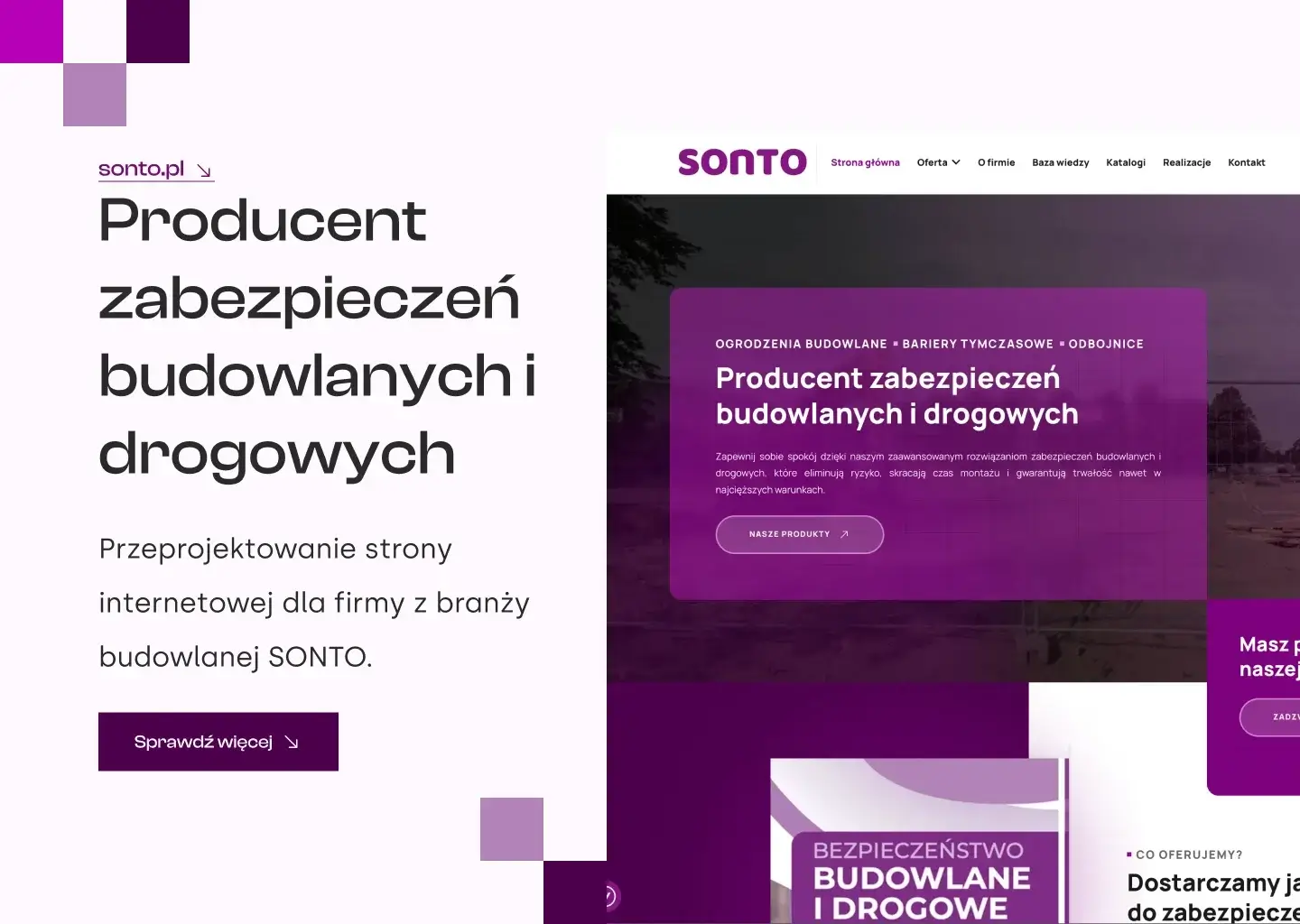 SONTO to polska firma, która w bardzo krótkim czasie zbudowała mocną pozycję w branży zabezpieczeń budowlanych i drogowych. Produkuje i dystrybuuje wszystko, co chroni teren i infrastrukturę — od ogrodzeń budowlanych i gabionów, po bariery, słupki i odbojnice przemysłowe.