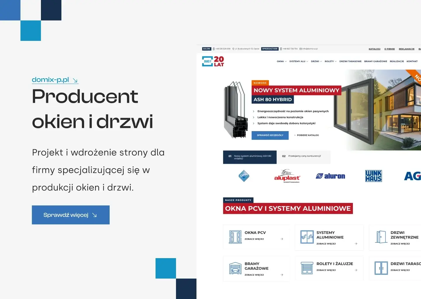 DOMIX-P to producent okien PCV i systemów aluminiowych z Dobrzenia, który od 2005 roku dostarcza produkty na rynek polski i niemiecki. W ciągu ostatnich 4 lat firma wygenerowała przychód na poziomie 100 milionów złotych.