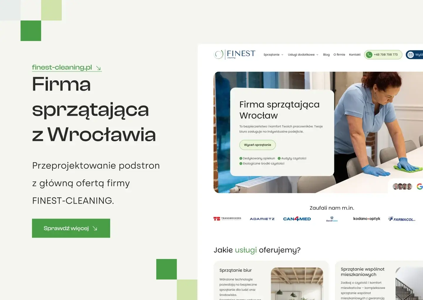 Klient to firma sprzątająca z Wrocławia, która od lat specjalizuje się w utrzymaniu czystości w biurach oraz na klatkach schodowych. Swoje doświadczenie przekuwa w realne efekty, obsługując zarówno mniejsze obiekty, jak i duże powierzchnie biurowe.