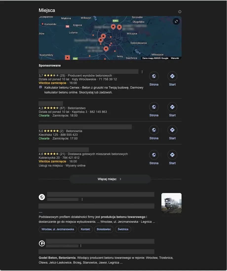 To nie problem. Właśnie dlatego optymalizujemy wizytówkę pod lokalne frazy, które wpisują Twoi klienci. Dzięki temu masz szansę zdobyć kontrakty tam, gdzie inni są niewidoczni.